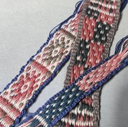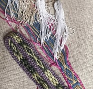 ぺブル模様と平尾栄を組み合わせて腰機で小さな布を織ります。