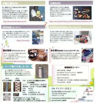 手織工房SOXとその仲間たちは、小さな工房やショップで、ていねいな手仕事を大切にしながらものづくりをおこなっています。